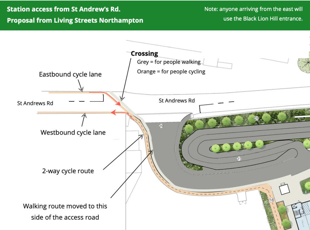 In reality there is no cycling infrastructure on this side of the station. There’s no safe route to the station from from Kettering Rd, Wellingborough Rd, or Kingsthorpe.