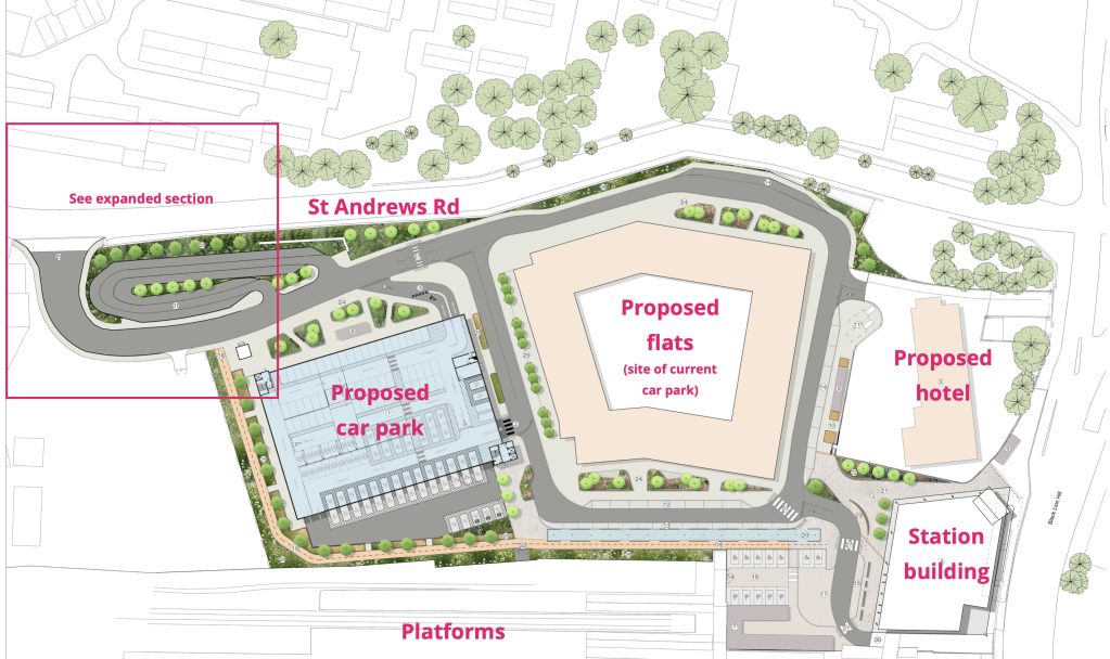 A new car park, hotel and flats are being proposed for the station site, with no plans to improve the surrounding walking and cycling infrastructure. This just builds in more car dependency.